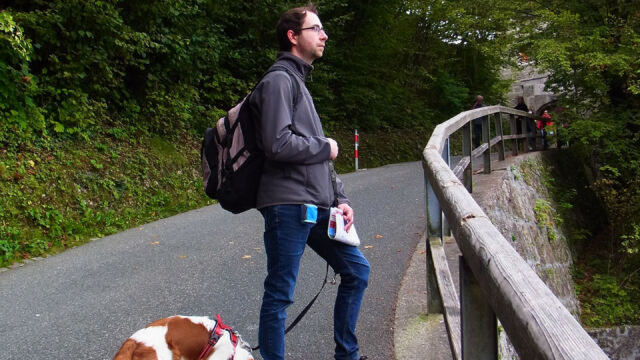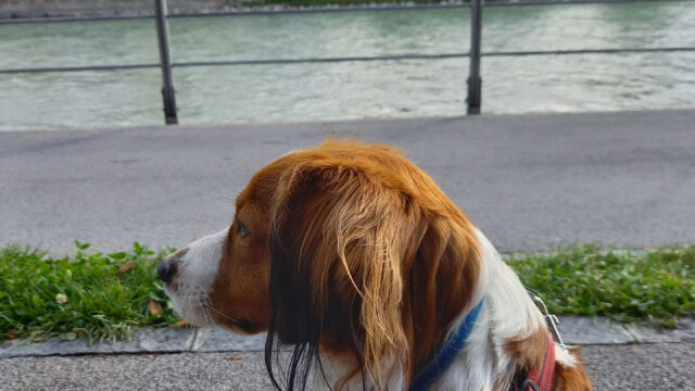 Einen Tag unseres Urlaubs waren wir in Salzburg. Sherlock hat es in Städten immer ein bisschen schwer, weil er sich ungern auf Stein löst. Zum Pullern oder gar Häufchen machen braucht er Gras oder wenigstens Erde unter den Pfoten. Er ist definitiv kein Stadthund, der an jeden Laternenpfahl markiert.