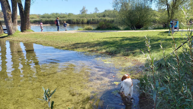 Aber wir haben reichlich Pausen gemacht um die schöne Landschaft zu genießen. Auch Sherlock sollte sich schließlich die Pfoten vertreten dürfen und tat dies auch, zum Beispiel direkt im See.