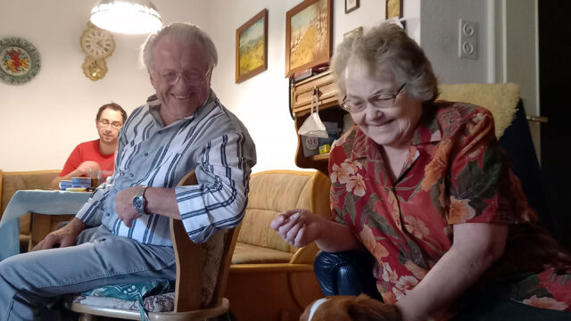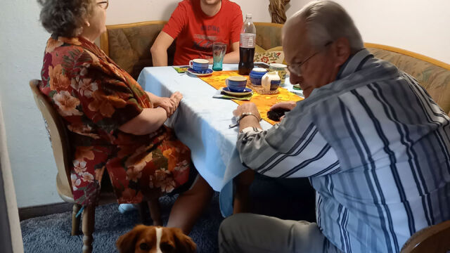 An einem anderen Tag haben wir meine Großeltern besucht. Beide schon über 80 wohnen sie im Allgäu, sodass wir sie nur sehr selten sehen. Sie hatten früher selbst einen Hund und freuten sich daher auch über unseren Besuch zu dritt.