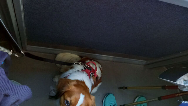 Besonders schön war auch hier wieder sein Vertrauen zu uns zu erkennen: die Seilbahn, die wir hoch nutzten, war proppenvoll. Wie in einer Sardinenbüchse standen die Menschen dicht an dicht. Und der kleine Hund hatte die Ruhe weg und war sogar so frech sich auf den Boden zu legen. Zum Glück waren die Menschen um ihn herum rücksichtsvoll und versuchten (mit Erfolg) nicht auf ihn drauf zu treten. Es waren wohl alle froh, dass der Hund so ruhig war. Er war nicht einmal der einzige Hund in der Gondel, aber beide haben sich gegenseitig ignoriert.