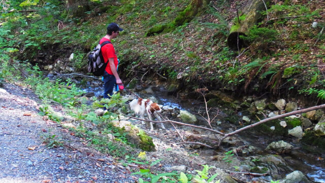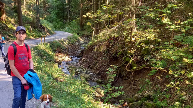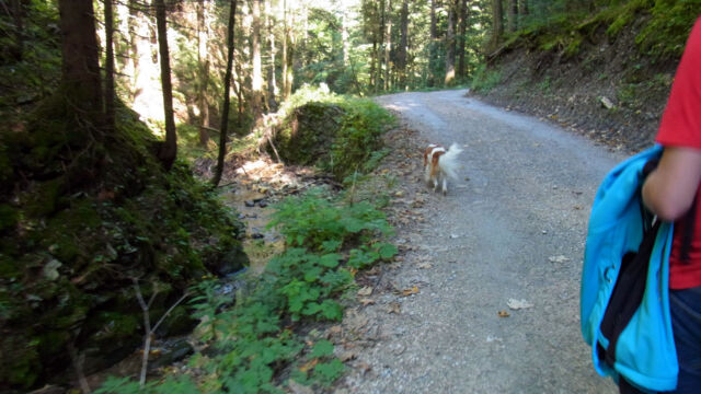 Auch als wir dann von der Mittelstation aus zum Tal wanderten, zeigte er keine Ermüdungsanzeichen (im Gegensatz zu Frauchens Unterschenkeln).